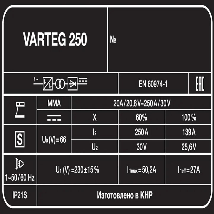 - Сварочный аппарат Varteg 250 - 1 шт.;