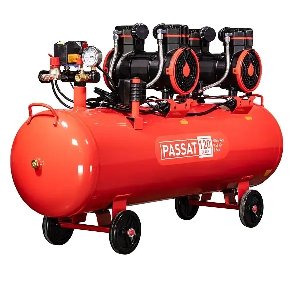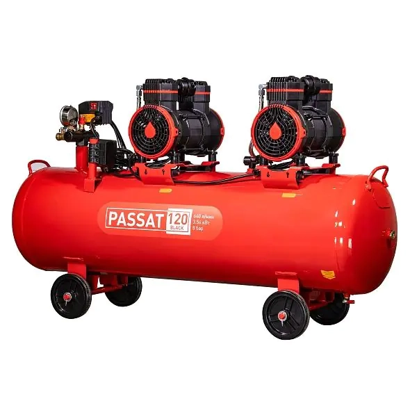 PASSAT-120 BLACK – самая мощная модель в линейке однофазных компрессоров, оснащённая функцией задержки запуска «голов». Плавный старт снижает нагрузку на электросеть и позволяет запускать компрессор даже при высоком давлении в ресивере.