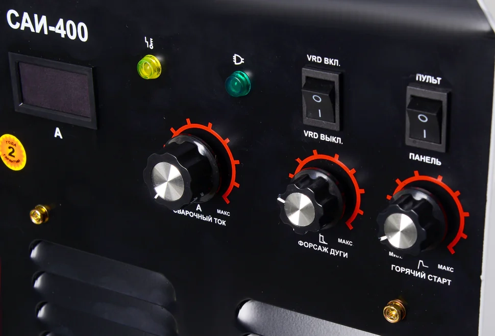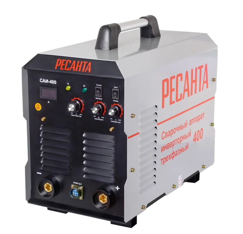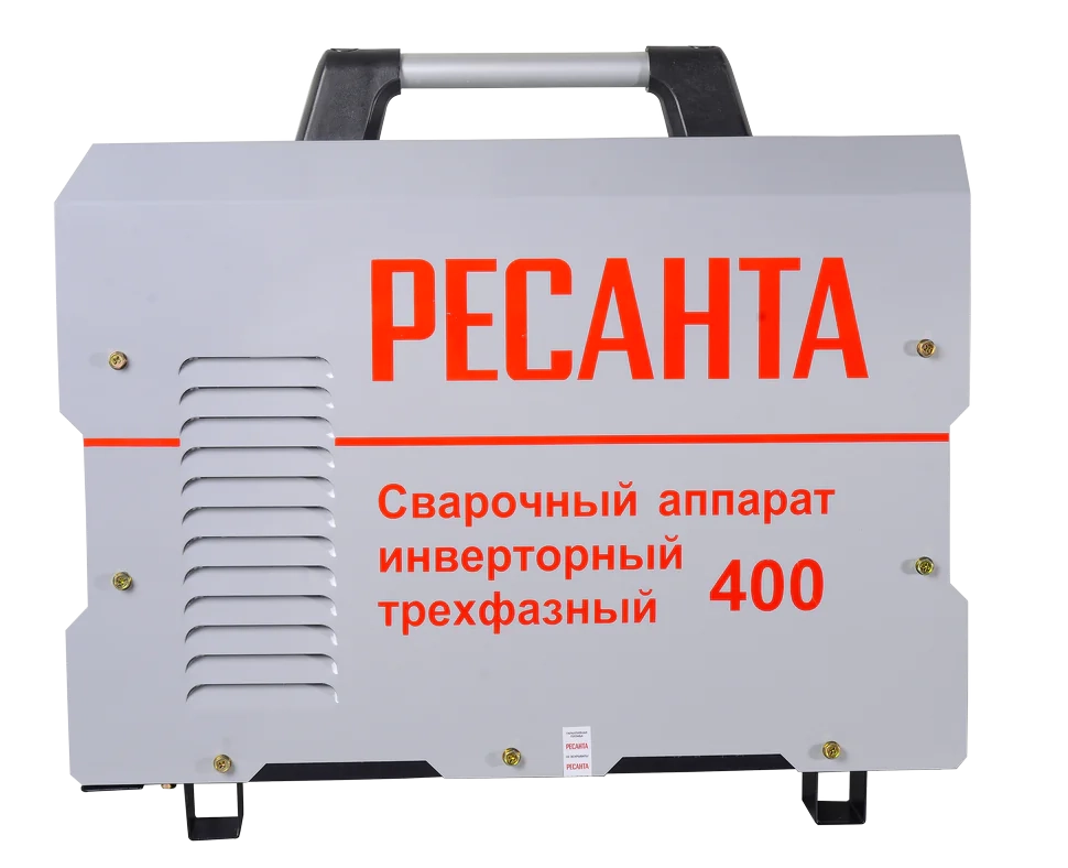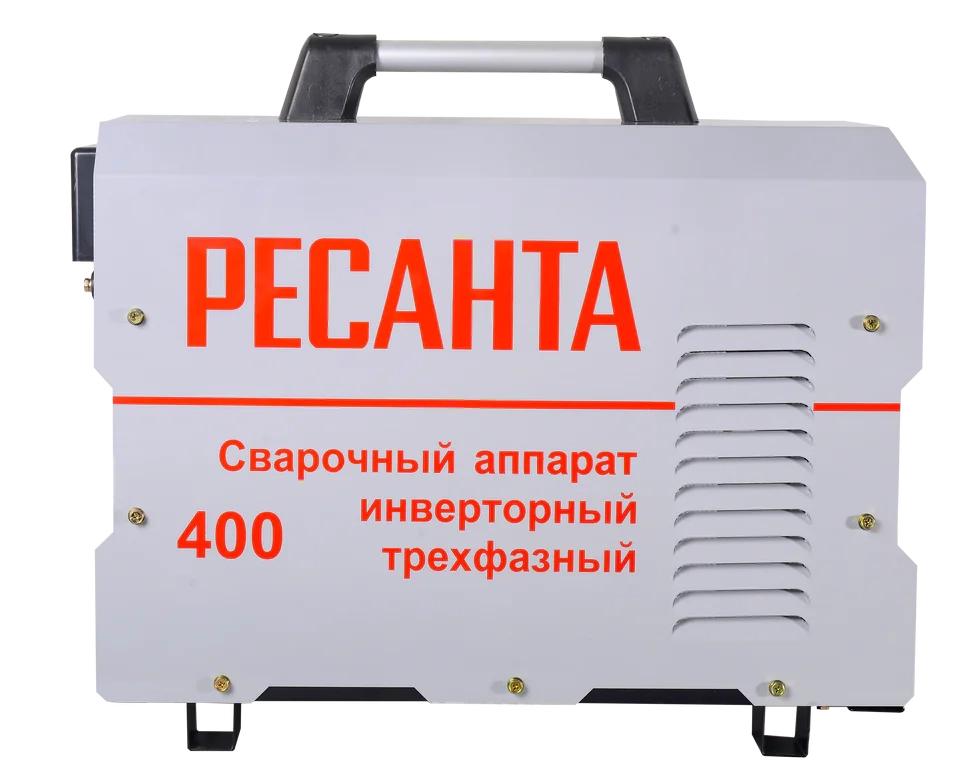 Сварочный аппарат Ресанта САИ-400 – инверторный источник питания постоянного тока, разработанный для ручной электродуговой сварки, методом ММА, плавящимся покрытым электродом. Прибор адаптирован под эксплуатирование в сетях с перепадами в диапазоне 380 (±15%) В. Этого вполне достаточно, чтобы обеспечить стабильную работу инвертора Ресанта САИ 400, в любом режиме нагрузки.