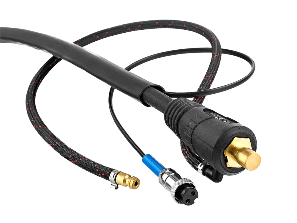 Благодаря замене стандартной резиновой оплетки на тканевую силовой кабель обладает невероятной гибкостью и легкостью, что существенно улучшает комфорт во время сварки. Сечение силового кабеля обеспечивает хорошую проводимость тока и позволяет работать на максимальных нагрузках. Силовой кабель обладает равномерной теплопередачей. Использование высокотехнологичных материалов кабеля повышает его износостойкость