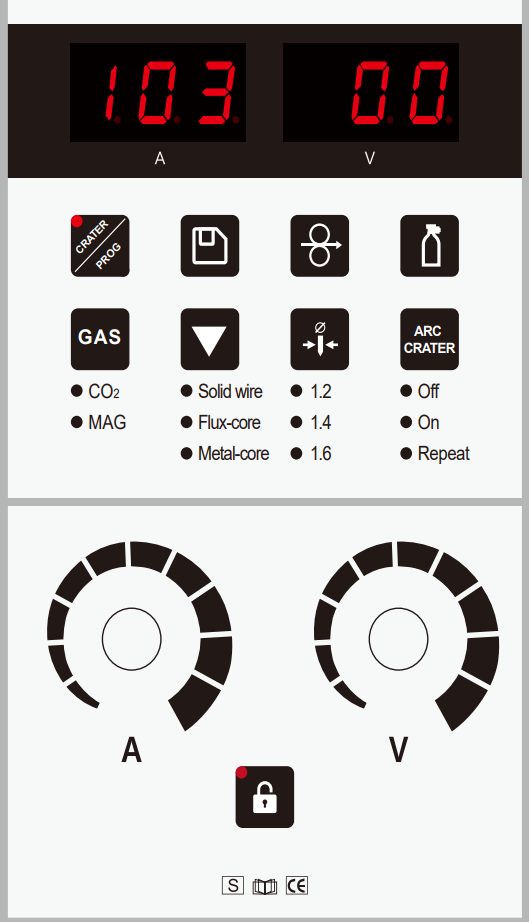- Полный контроль параметров: начиная от пост продувки газа, скорости подачи проволоки и других настроек, заканчивая пост продувкой после сварки.